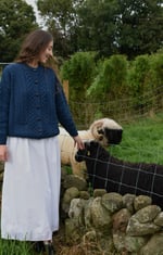 The green is bright and fresh, which is the perfect pop of colour and the ocean blue is a blend of two beautiful yarns. The pattern includes some of the recognised Aran stitches - honeycomb, cable, the tree of life.