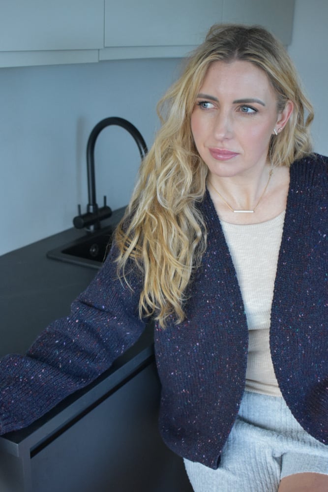 The new Draper cardigan comes in this earthy dark olive colour. A feminine shape and lightweight for on/off wear. As the knit is buttonless it suits particularly for the spring/summer season. The colour is rich and makes a statement of your outfit. The wool is from the famous Donegal Yarns.