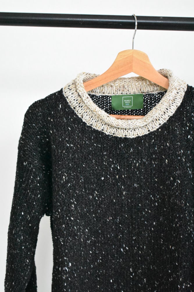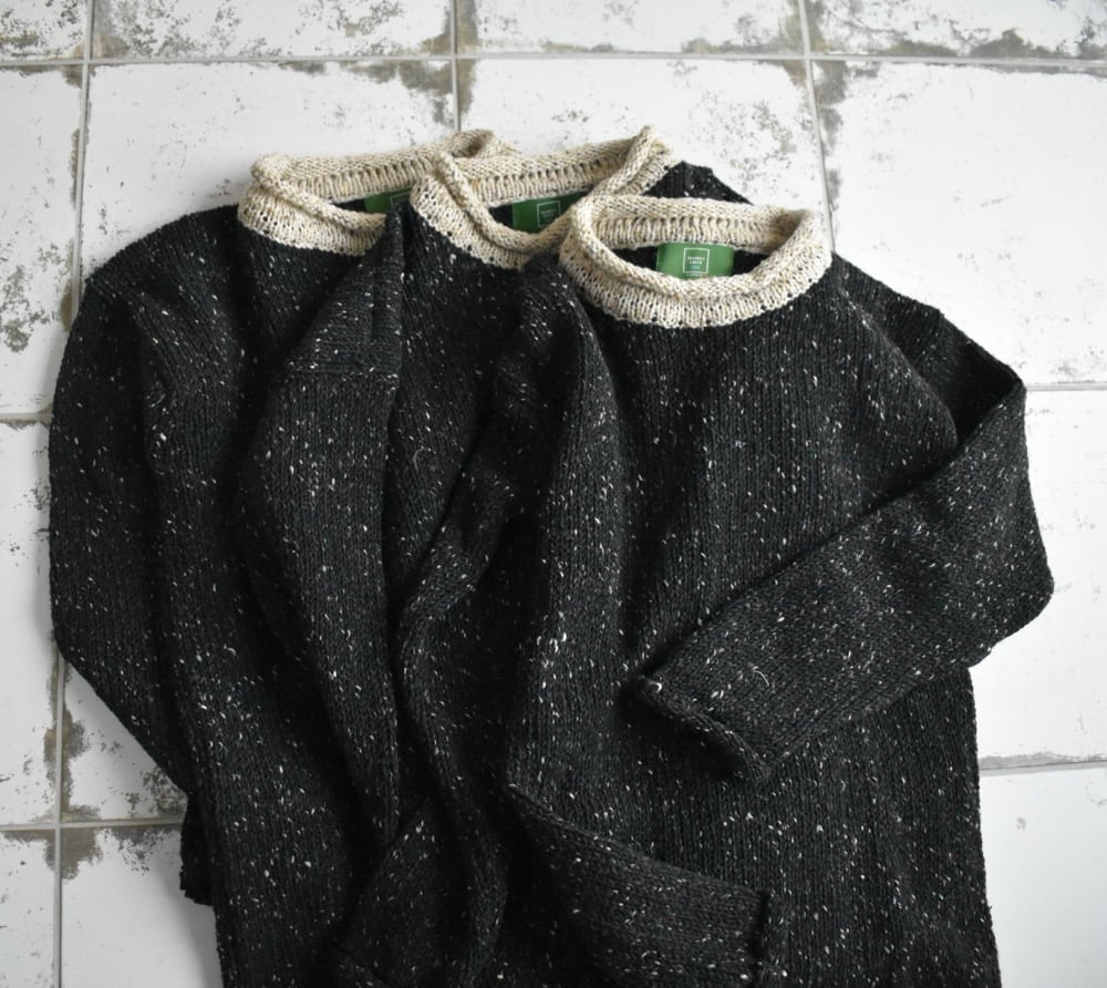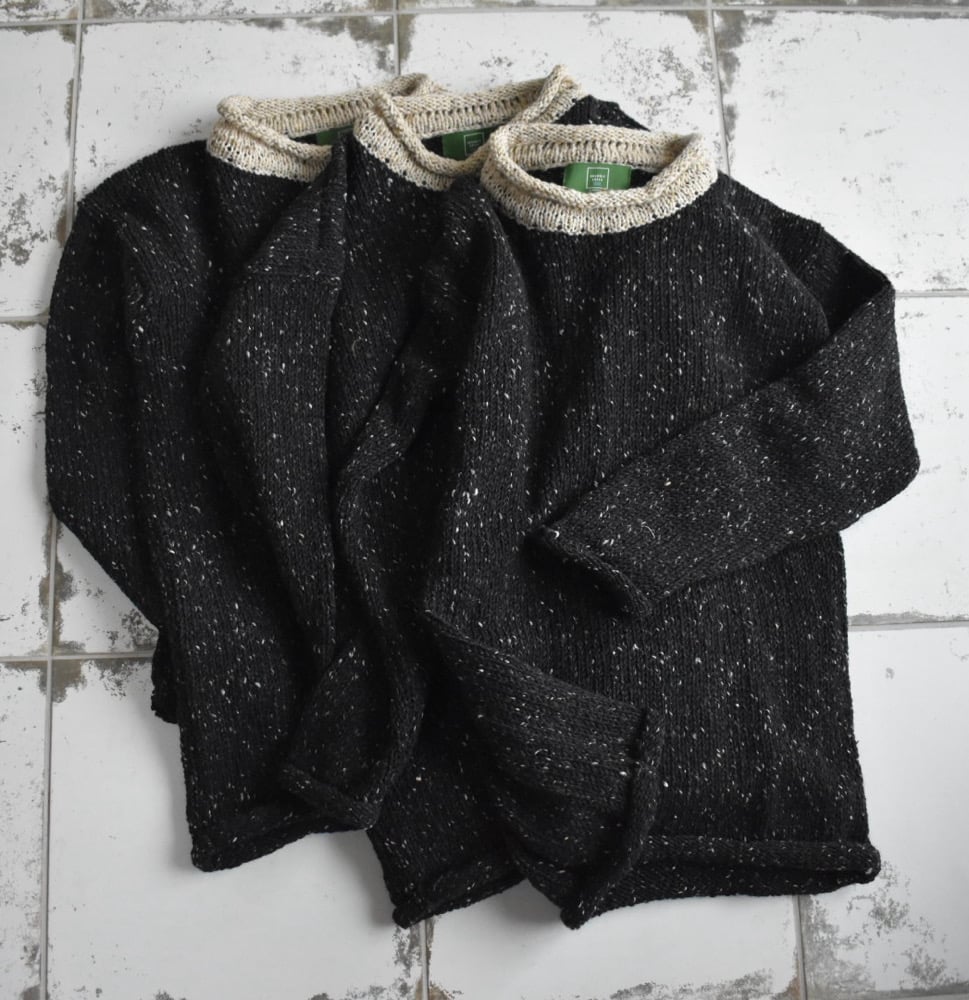 The Irish Stout sweater is an abstract nod to a favourite drink here. I personally have be known to eat Mussels & Guinness on family trips to Donegal. I use it in my cooking regularly to make stews and cakes.