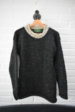 The current batch of Irish Stout sweaters has an oatmeal collar but not cuff like in some of the photos.