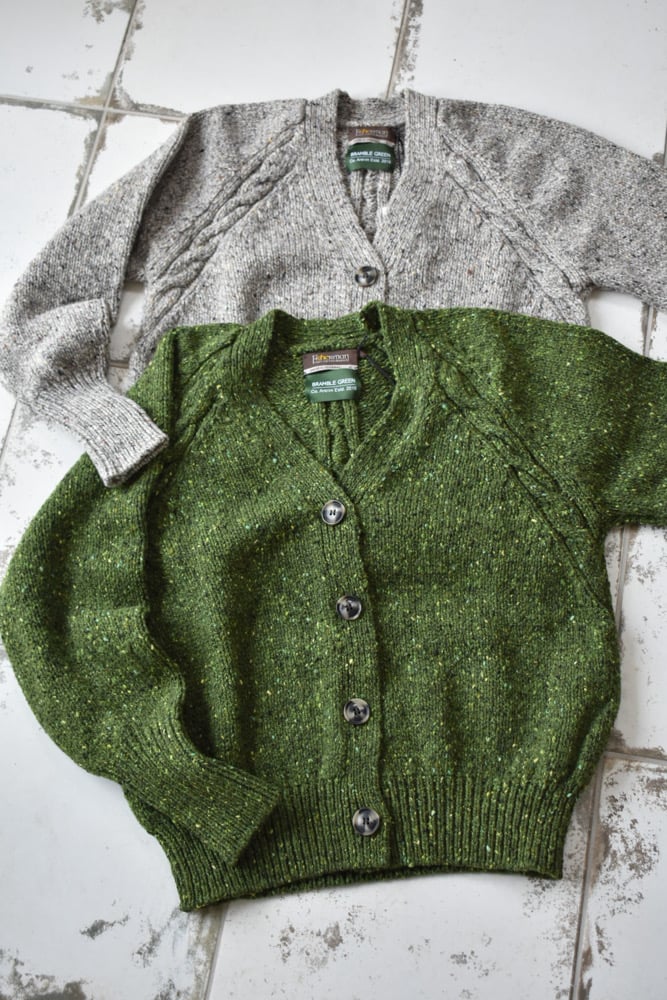 The beautiful wools - shamrock green and grey stone are sourced from the famous Donegal Yarns.